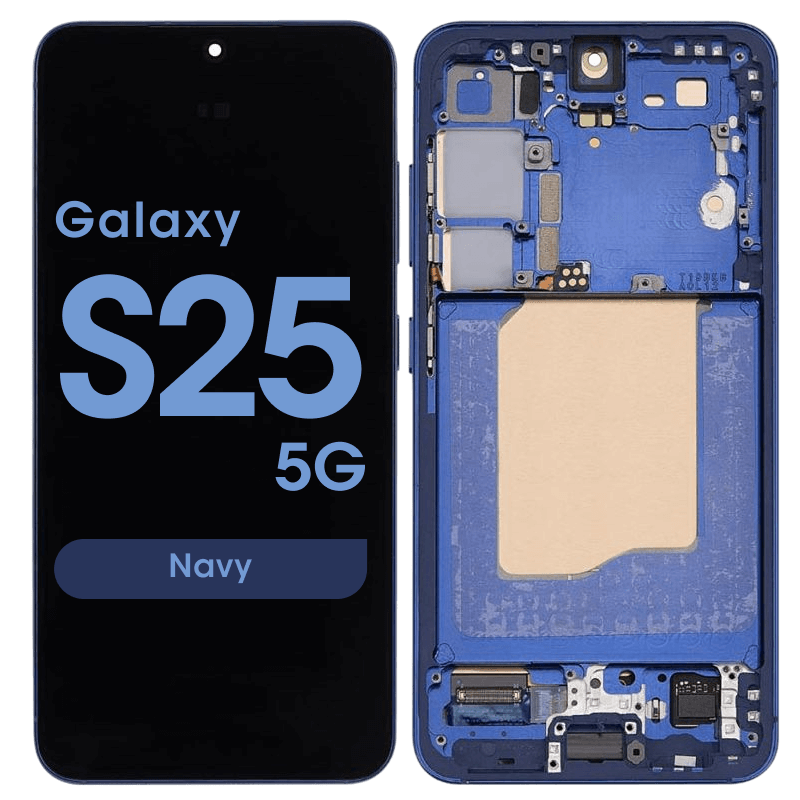 Dynamic LTPO AMOLED 2X 6.2" 1080x2340 complete display with frame for Galaxy S25 SM‑S931B in navy; service pack quality.