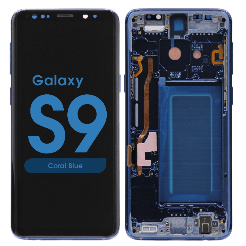 Super AMOLED 5.8" 1440x2960 complete display with frame for Galaxy S9 SM‑G960F in coral blue; service pack quality.