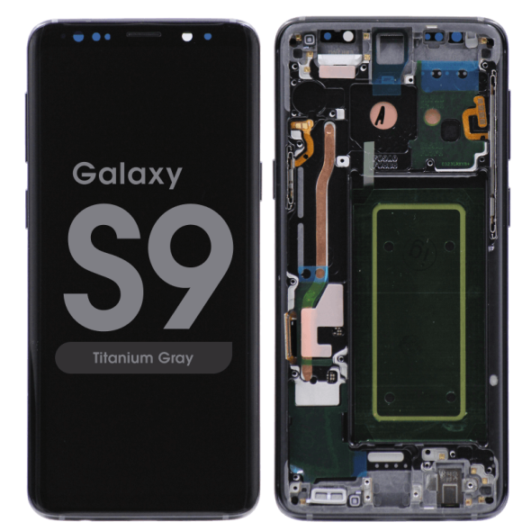 Complete display assembly GH97‑21697EC / GH97‑21696C for Galaxy S9 SM‑G960F in titanium grey; service pack quality.