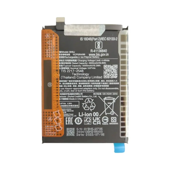 Li‑Po 5000 mAh; replacement battery for Poco X5 / Redmi Note 12 5G.