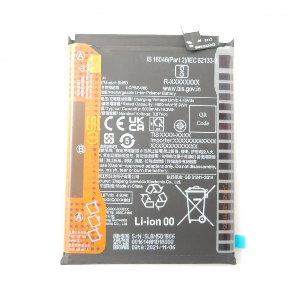 Li‑Po 5000 mAh; 33W fast charging; PD3.0/QC support; replacement.