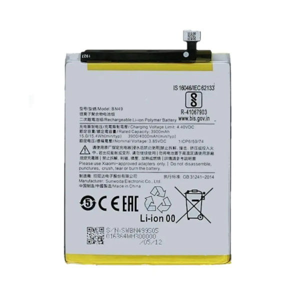 Li‑Po 4000 mAh; 10W wired charging; replacement.