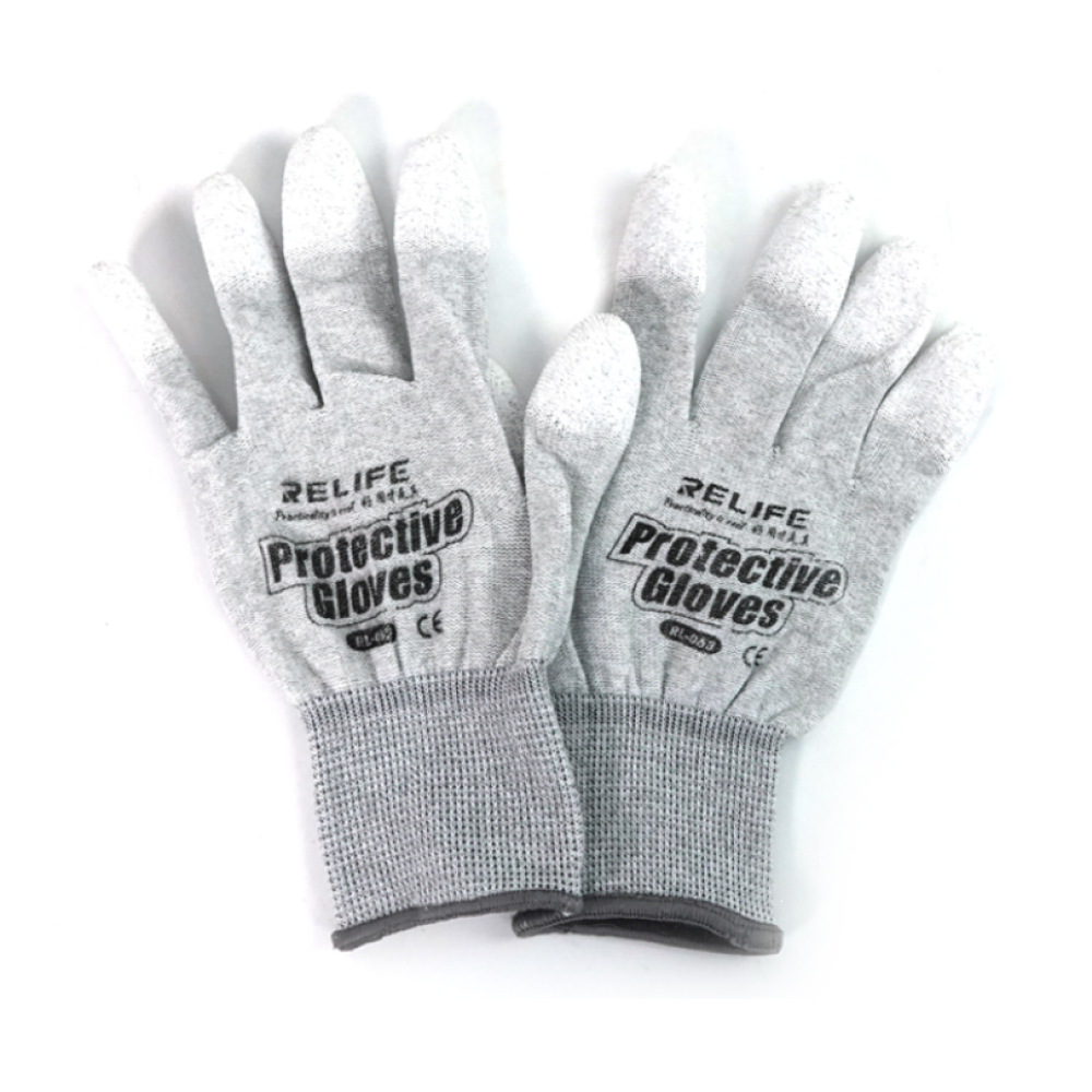Anti-static gloves RL-063 for ESD-safe handling of delicate electronic parts.