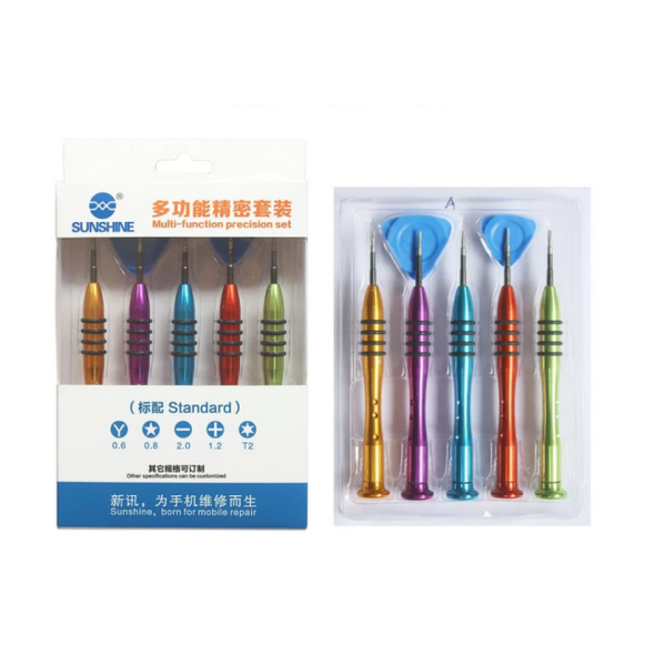 Comprehensive screwdriver set SS-5103A covering common precision sizes for electronics.